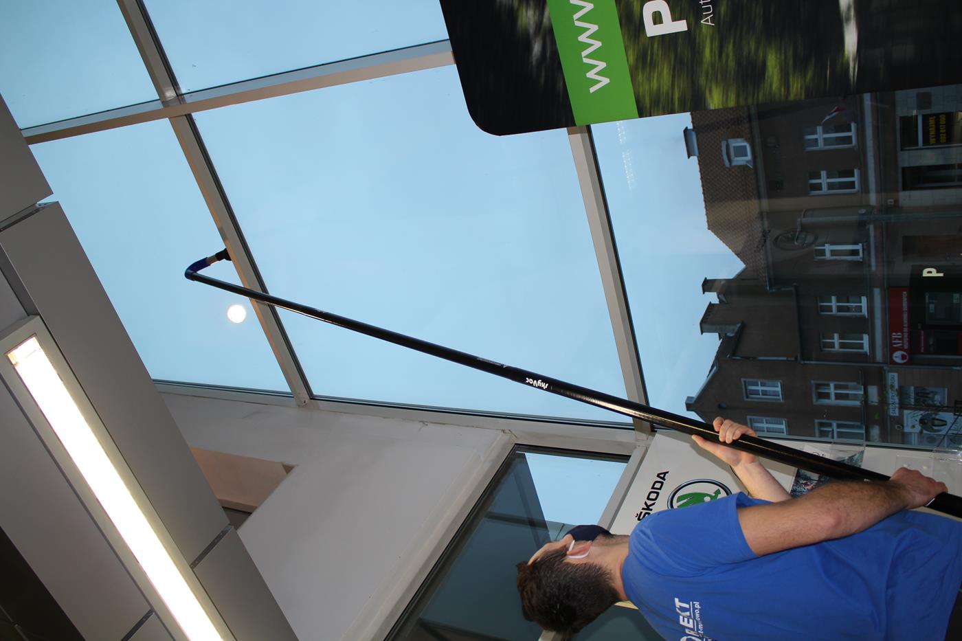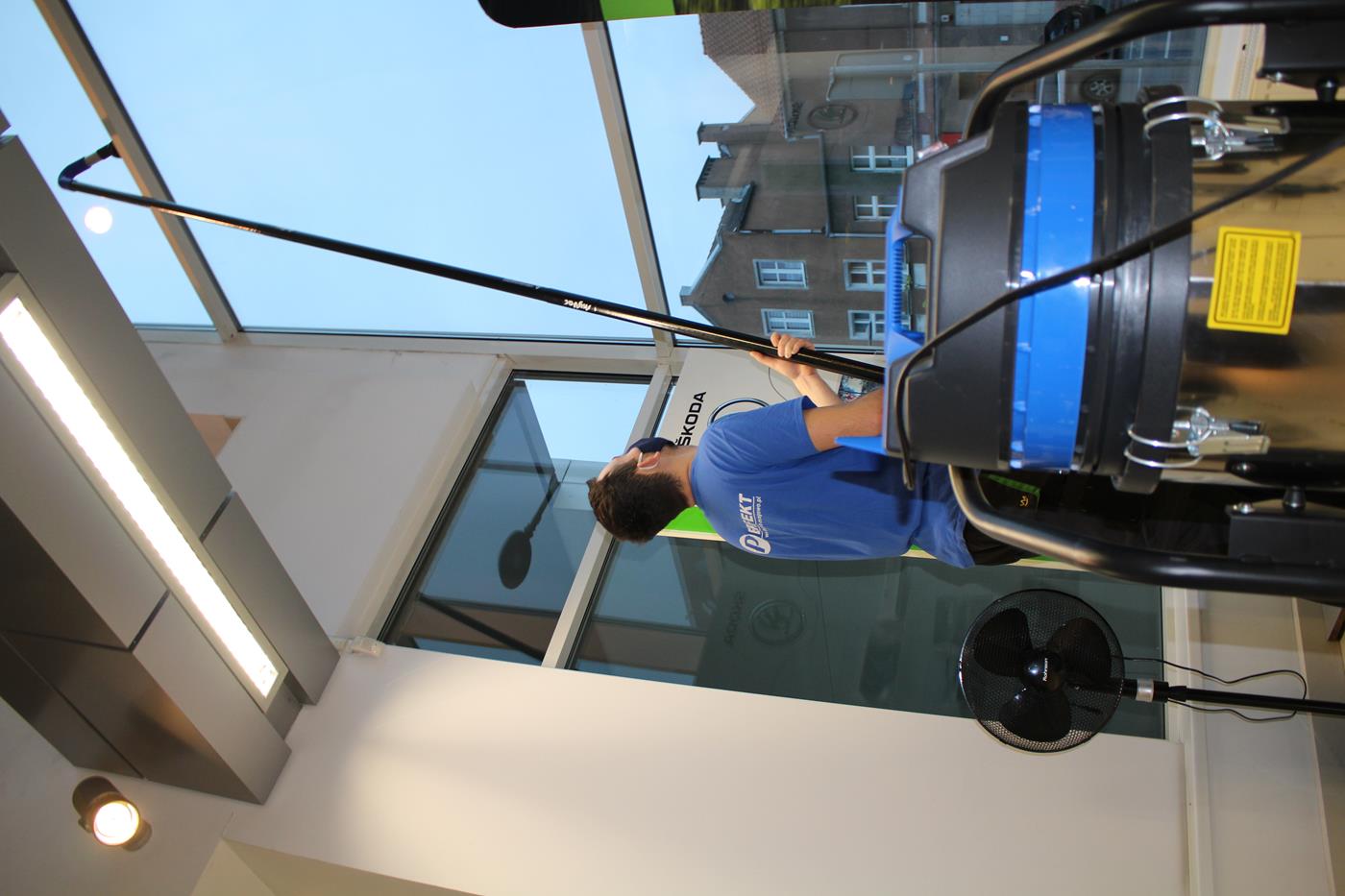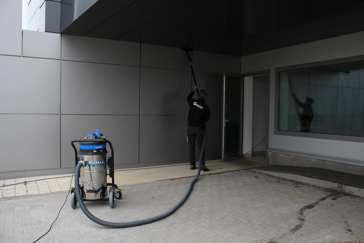 Dzięki systemowi SkyVac możliwe jest odkurzanie na wysokościach i w trudnodostępnych zakamarkach bez konieczności używania podnośnika koszowego do wysokości 14m z poziomu ziemi.